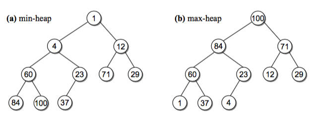 - 最大堆: 对于每个非叶子节点 V,V 的值都比它的两个孩子大,称为 最大堆特性(heap order property) 最大堆里的根总是存储最大值,最小的值存储在叶节点。