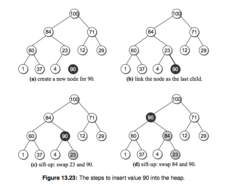 - 插入新的值。插入比较麻烦的就是需要维持堆的特性。需要 sift-up 操作,具体会在视频和代码里解释,文字描述起来比较麻烦。